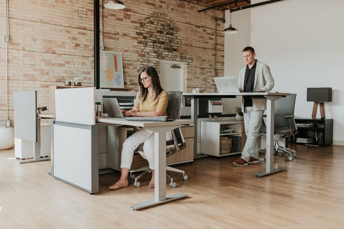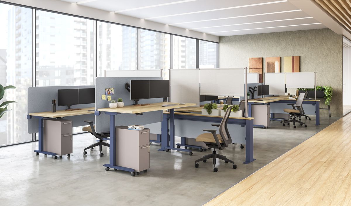 A standing desk for office setups helps combat sedentary habits. Research indicates that standing desks can: