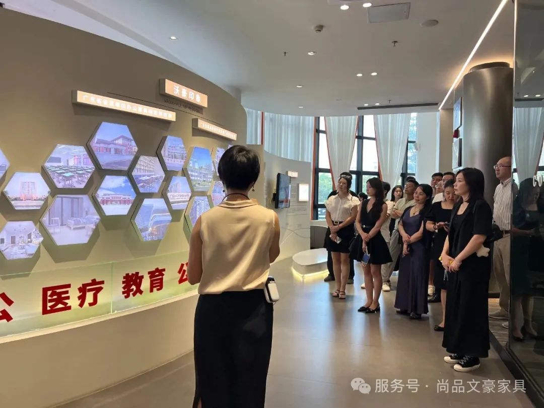 Accompanied by Liang Qunsheng, Project General Manager of Guangdong Worhao Furniture Co., Ltd., the attendees first visited the company’s exhibition hall. The diverse product lines and innovative design concepts of Guangdong Worhao Furniture Co., Ltd., ranging from modern minimalist office furniture to humanized educational spaces and high-end custom hotel products, attracted widespread attention. General Manager Liang Qunsheng introduced on site: "Wenhao has always been customer demand-oriented, providing one-stop services from design and production to after-sales. We have established long-term cooperation with many well-known enterprises, schools, and medical institutions across the country."