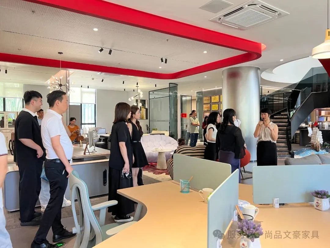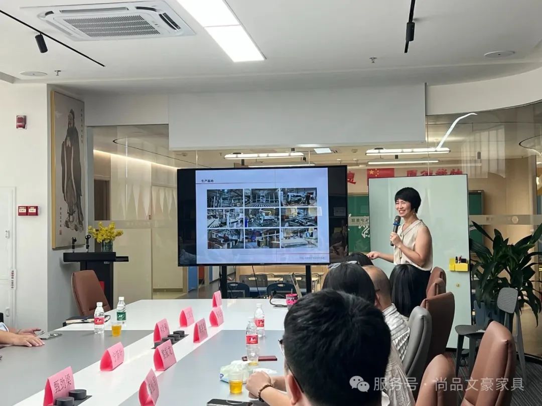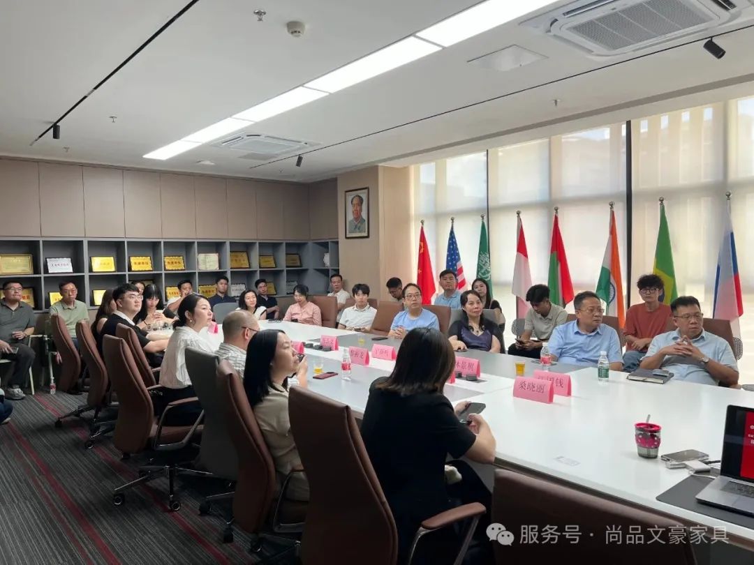 After the visit, representatives of the three parties held a discussion in the conference room. General Manager Liang Qunsheng elaborated on Wenhao Group Furniture’s practical experience in cross-border cooperation through case studies. She proposed that enterprises could engage in in-depth cooperation with young overseas Chinese and young entrepreneurs in areas such as project procurement and brand collaboration through a model of "product customization + resource integration + joint promotion." For example, tailored furniture products for the international market could be jointly developed leveraging the overseas resources of young overseas Chinese. For the innovative projects of young entrepreneurs, low-cost, high-efficiency office space solutions could be provided.