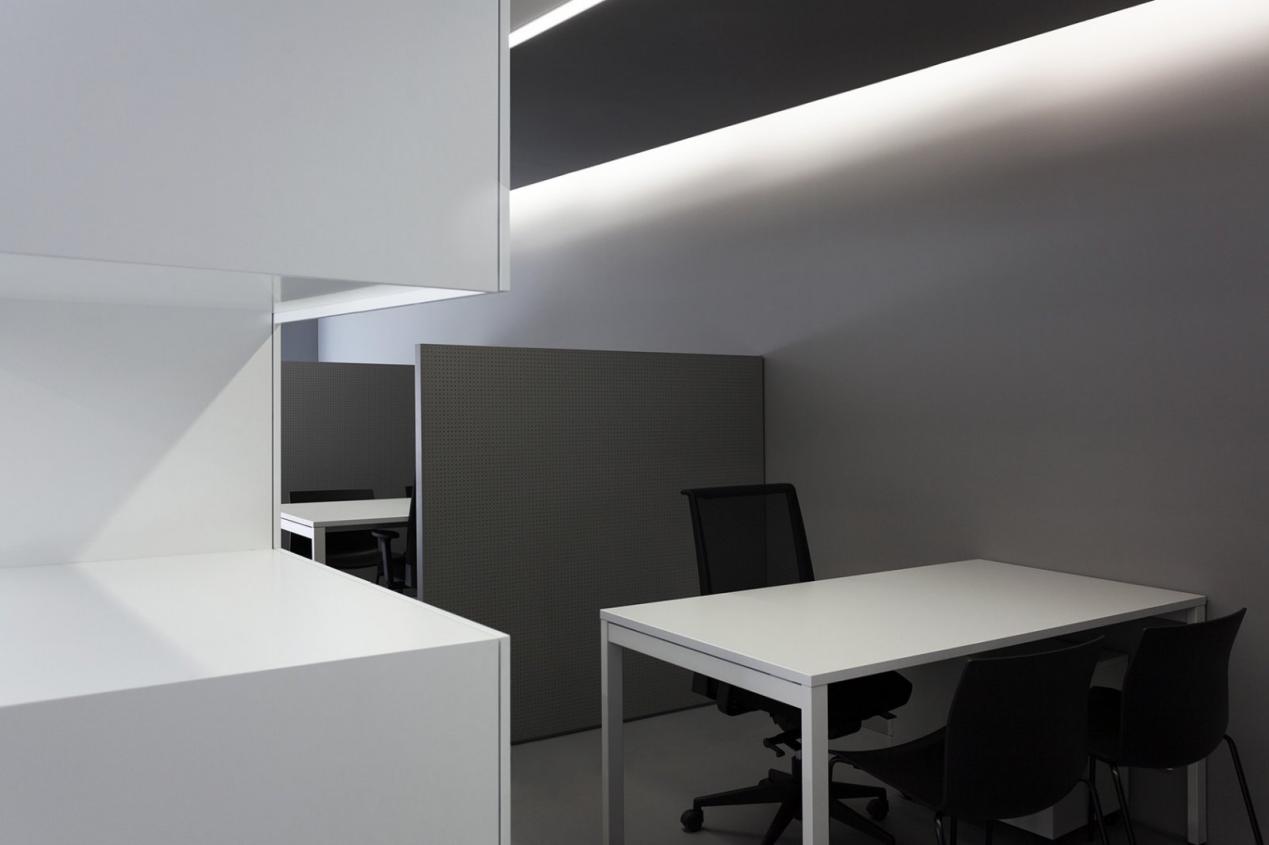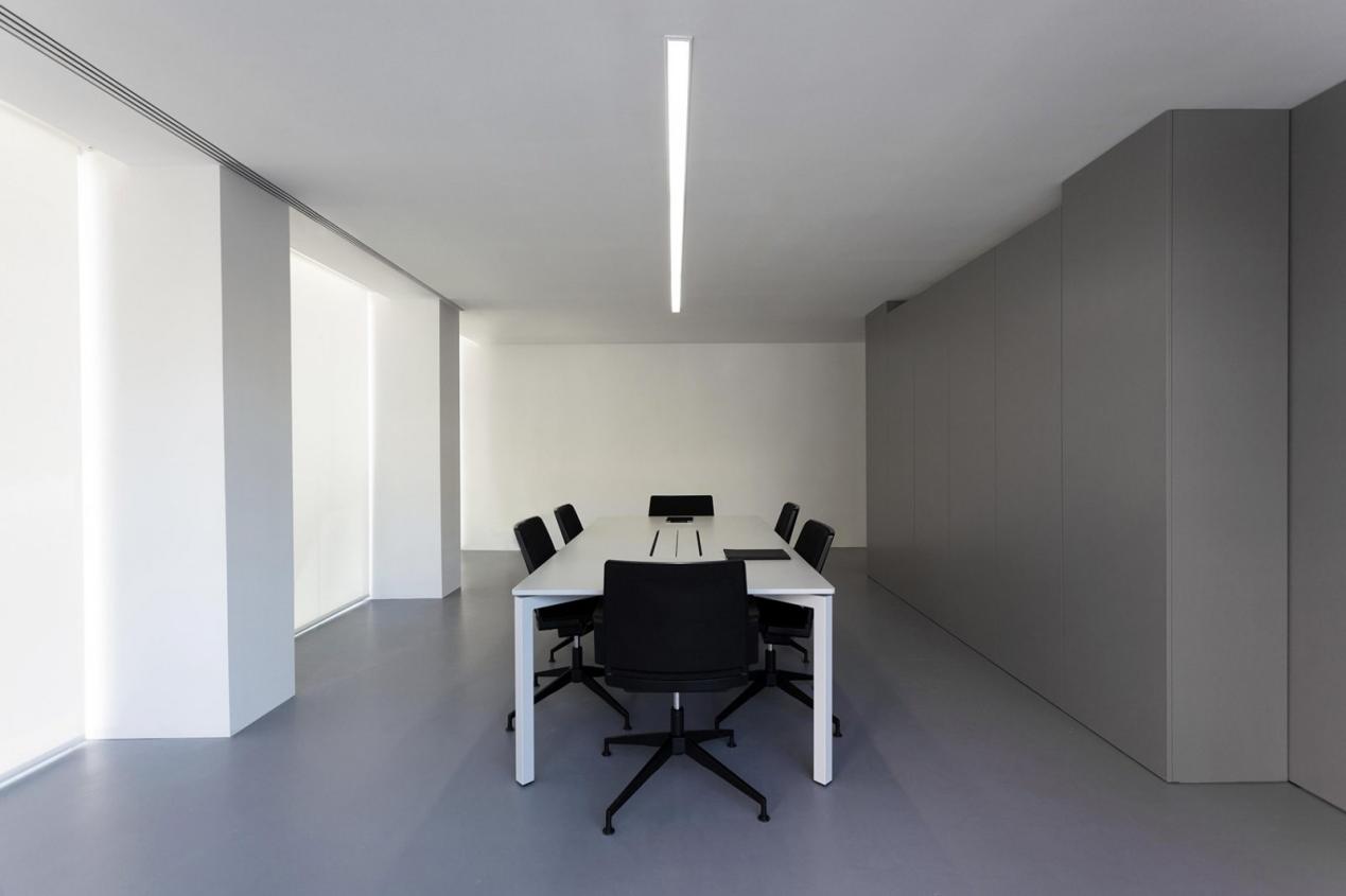 5. Let There Be Light: Ensure your space has ample, high-quality lighting. The OAV office uses "clean, white light beams shine down from the ceiling to reflect off the clean surfaces" to create an airy, focused environment.