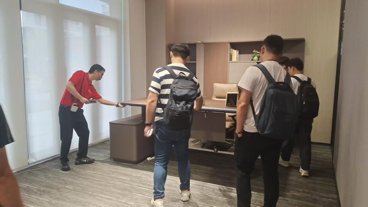 ts own unique charm. The youths examined the collection with keen interest, frequently expressing their admiration. They gently ran their fingers over the surfaces, appreciating the textures of the materials, and carefully studied the intricate details, marveling at the exquisite craftsmanship. Meanwhile, Liang Qunsheng and Zhao Zhenyu provided thoughtful explanations of the features and strengths of each piece—covering everything from design philosophy and material selection to the integration of smart functions and bespoke customization services. Their detailed presentations gave the Taiwanese guests a comprehensive and in-depth understanding of Wenhao Industrial's office furniture offerings.