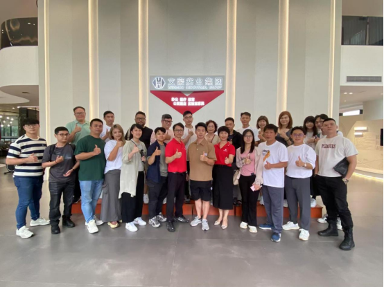 Following the exchange, everyone gathered in an open area outside the showroom for a group photo. In the picture, the Taiwanese youths and Wenhao Industrial Group’s hosts shone with bright smiles and stood close together, reflecting the profound friendship and spirit of unity between them. This group photo not only captured a beautiful moment but also became a cherished memento of cross-strait youth exchange and cooperation.